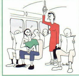 I used to live in the suburbs, and I had to commute to school in Washington, D.C. every morning. I always had a seat on the bus before it got filled gradually as we traveled a long way to the city. When all the seats were taken and a woman came aboard, I made it a special point to get up and offer my seat. My offer was sometimes turned down, occasionally with hostility.